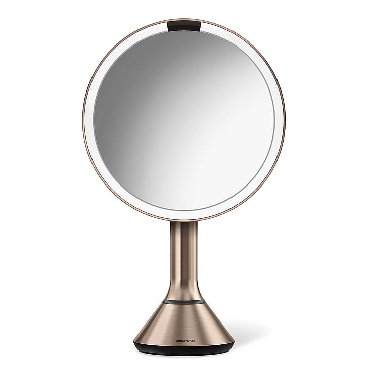 Hvis du ønsker et kosmetikspejl, der kombinerer teknologisk innovation med et unikt og luksuriøst design, er Simplehuman sensor mirror i rosa guld det perfekte valg. Denne model er ikke bare et funktionelt redskab til din daglige rutine – det er også et designelement, der bringer elegance og raffinement til dit badeværelse eller makeup-område.