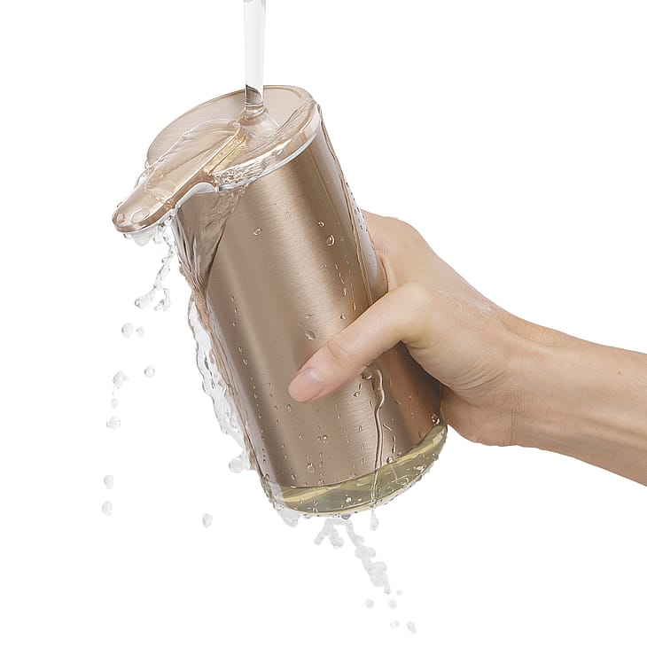 Det gennemtænkte design byder også på en silikoneventil med drypfri lukning, så pumpen altid holder sig pæn og ren. Den har desuden en IP66 vandtæthedsklassificering, så du uden problemer kan skylle hele pumpen under vandhanen for nem rengøring.