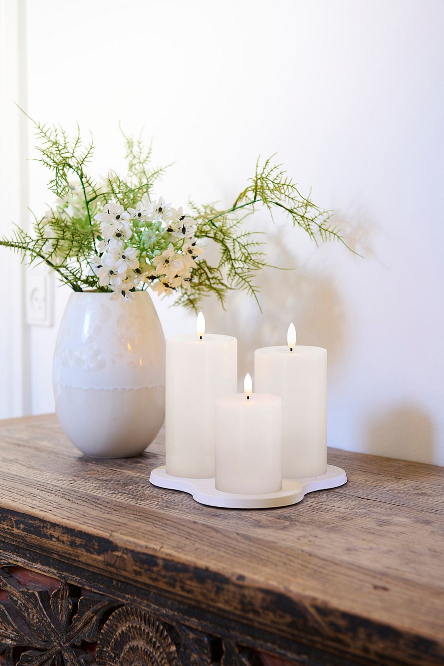 Smuk gaveæske med 3 stk. Sille livagtige lys i ægte stearin hvor hele vægen og flammen er synlig, samt 1 Multicharger ladestation. Sille er et af vores nye miljøvenlige alternativer til traditionelle stearinlys.