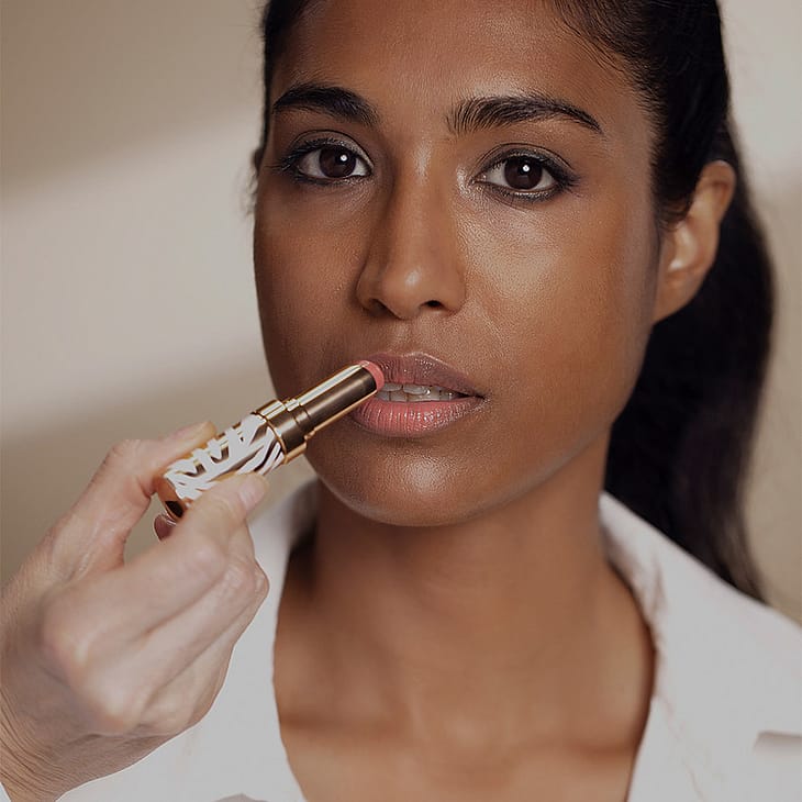 Påfør læbestiften direkte på læberne eller ved hjælp af en børste.