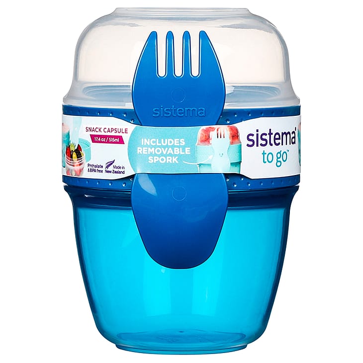 Sistema Snack To Go er den perfekte beholder til et lille mellemmåltid. Beholderen er opdelt i 2 rum, så di kan holde maden adskilt. Beholderen kommer med en ske/gaffel, der kan sidde på siden af beholderen.