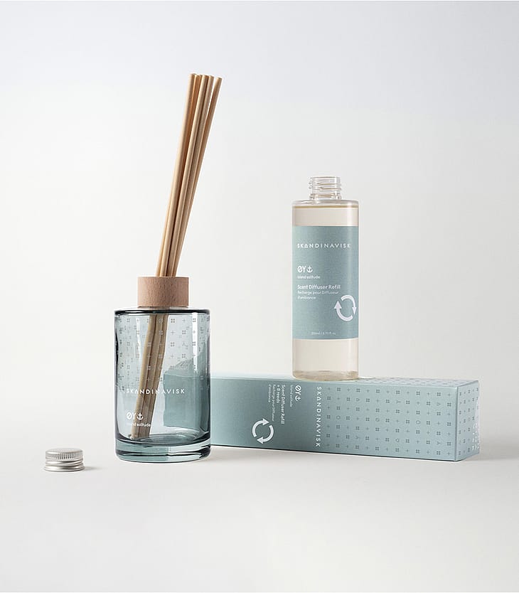Din 200ml Refill er emballeret i genanvendt plastik (rPET). Hæld blot væsken forsigtigt i dit Skandinavisk glas, udskift pindende med nye, rens og sortér til genbrug.