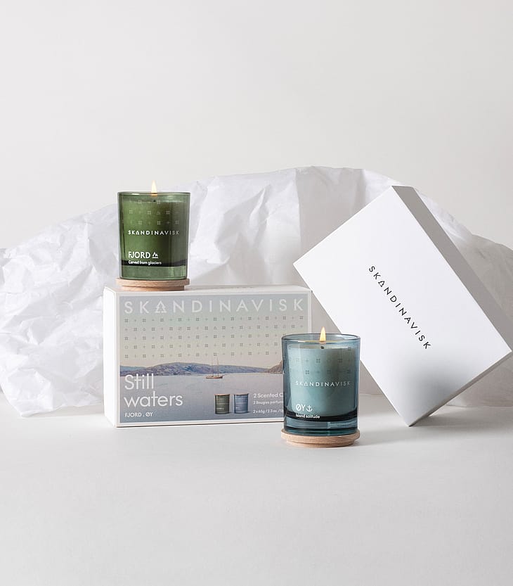 En hyldest til endeløse dage brugt i en sommerdis langs kysterne. Vores Still Water duftlys duo gaveæske samler to af vores kystdufte, ØY og FJORD.