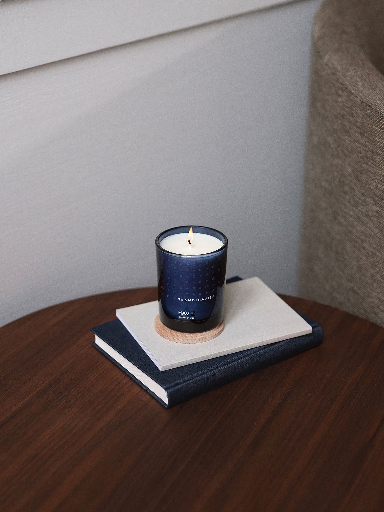Duftlys med voks udvundet fra svensk rapsolie. Lyset er vegansk og kommer i et malet glas med indgraveret FSC-certificeret bøgetræslåg.