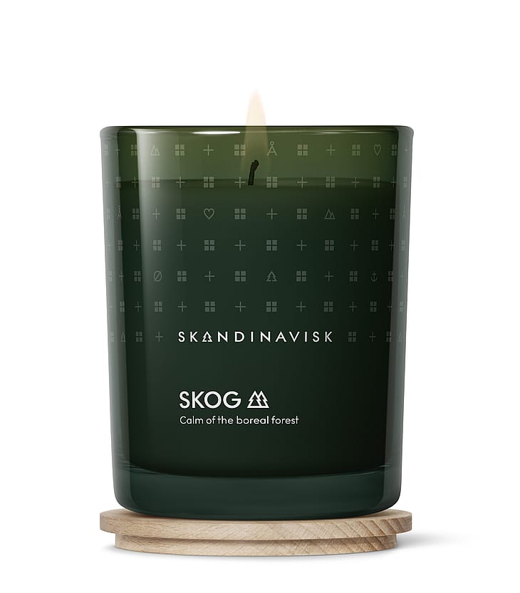 Duftlys med voks udvundet fra svensk rapsolie. Lyset er vegansk og kommer i et malet glas med indgraveret FSC-certificeret bøgetræslåg.