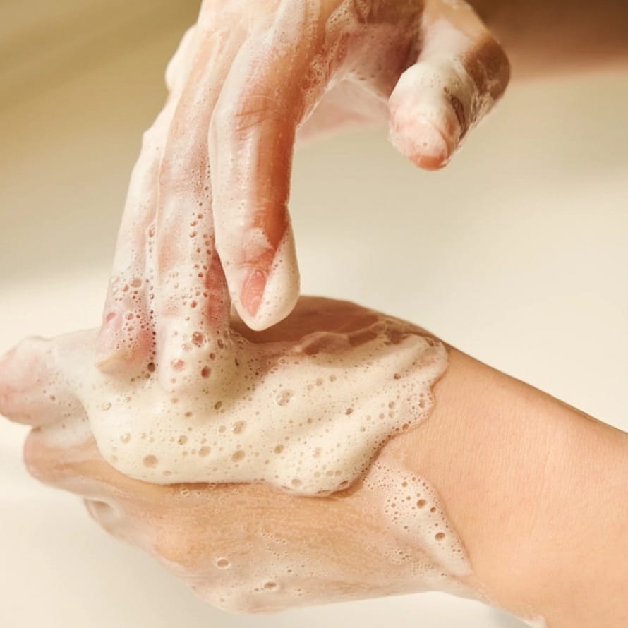 Mild skumrens med centella og hyaluronsyre, der efterlader huden frisk og ren.