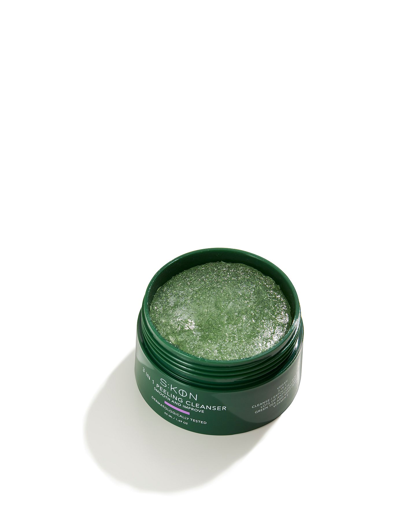 Denne unikke 3-i-1-formel fjerner makeup, urenheder og døde hudceller med fine, genanvendte matcha-tekorn, samtidig med at huden bliver næret og beskyttet med antioxidanter fra grøn te, mynte og E-vitamin. Huden efterlades frisk, blød og strålende – klar til dagen eller natten.