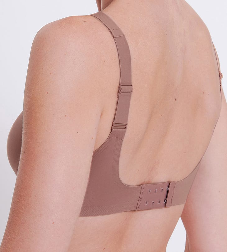 Blød BH med udtagelige åndbare indlæg Fast støtte Usynlig teknologi mellem skålene giver ekstra støtte Superblød, åndbar, GRS-certificeret genbrugsmikrofibre 360-graders strækbart stof, der finder formen igen Aktiv silke™-teknologi transporterer fugt væk og holder dig tør og komfortabel Helt usynlig under stramt tøj takket være innovativ punktlimingssteknologi Ingen bøjler, ingen mærker, ingen sømme, så det føles som et ekstra hudlag Justerbare stropper Hægtelukning bagpå