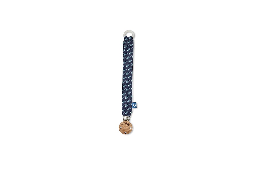 Fineste suttesnor med print i 100% bomuld med med en træ clips og gummi ring til at holde sutten.