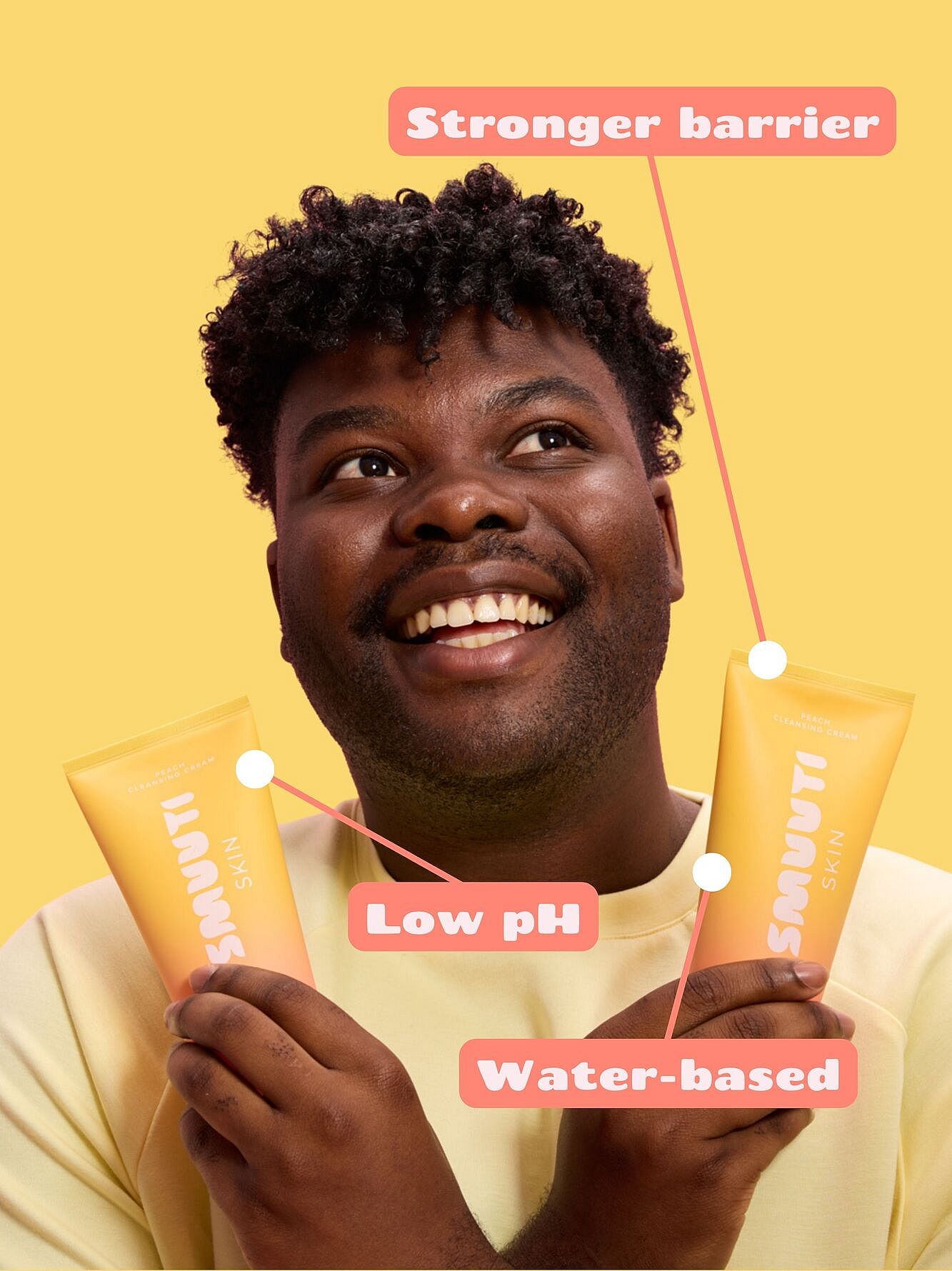 Den lave pH-værdi og de milde overfladeaktive stoffer beskytter hudbarrieren. Nogle af rensemidlerne er erstattet med en lille mængde skånsomt rensende kaolinler.