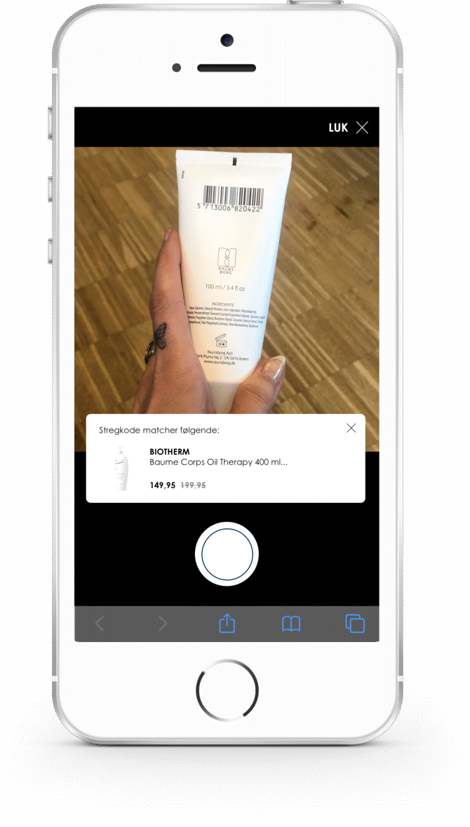 Du kan også prøve at scanne stregkoden ved at holde den horisontalt foran kameraet