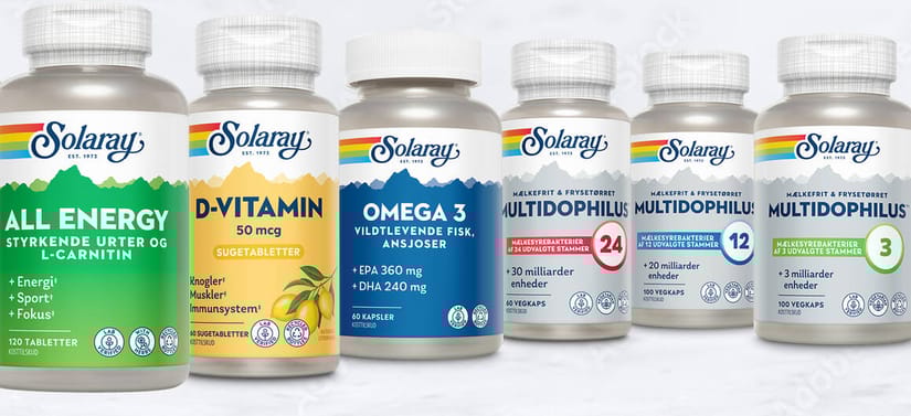 Solaray har leveret vitaminer og kosttilskud siden 1973. Alle Solarays produkter er glutenfri, laktosefri, og fri for kunstige tilsætningsstoffer. Solaray går ikke på kompromis med kvaliteten, og du kan være sikker på altid at finde vitaminer, mineraler og kosttilskud af den højeste kvalitet, baseret på de bedste råvarer.