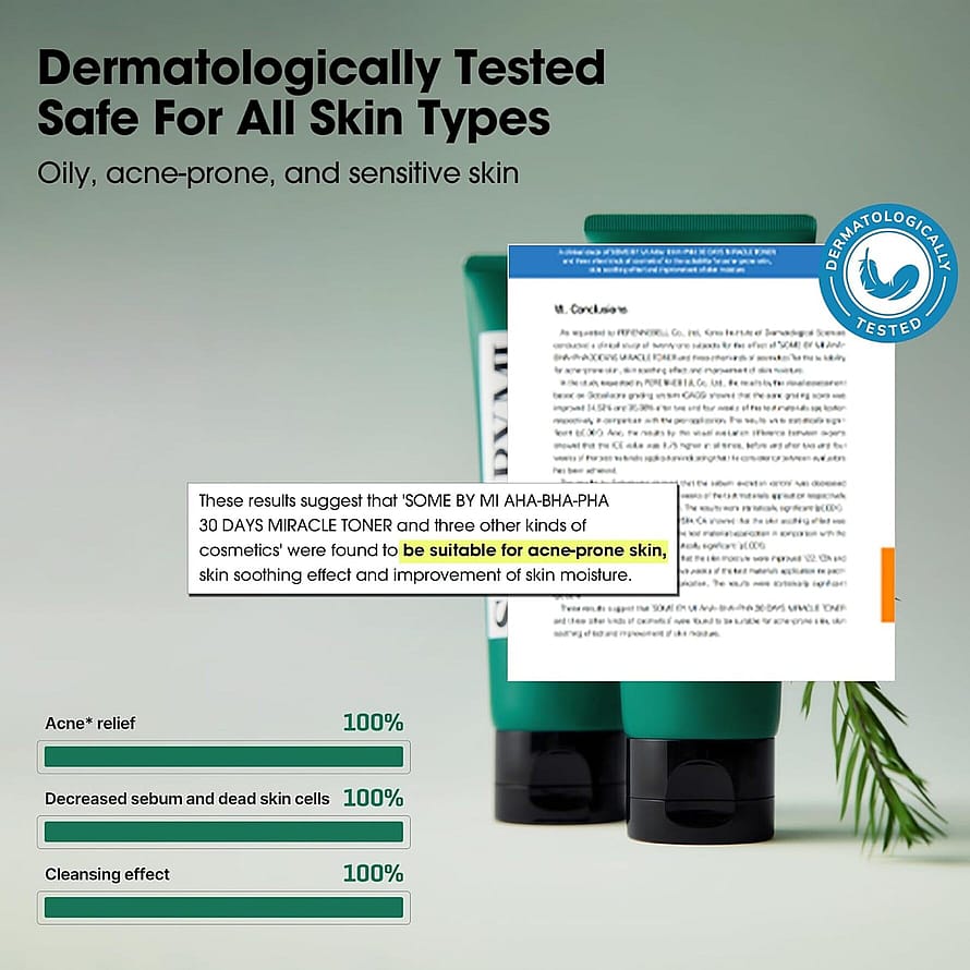 AHA BHA PHA 30 Days Miracle Foam er fri for kunstig parfume, parabener, udtørrende sulfater, udtørrende alkohol og silikone.