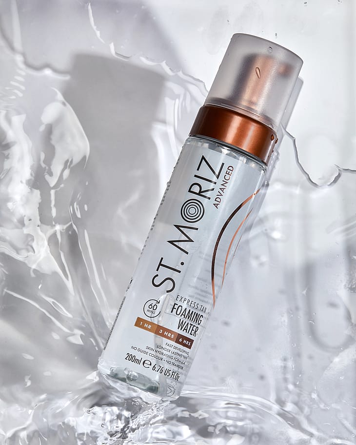 Denne Express Tan Foaming Water er uden guidefarve og smitter derfor ikke af på tøj eller sengetøj.