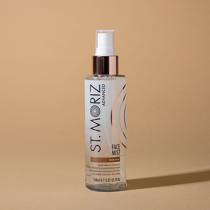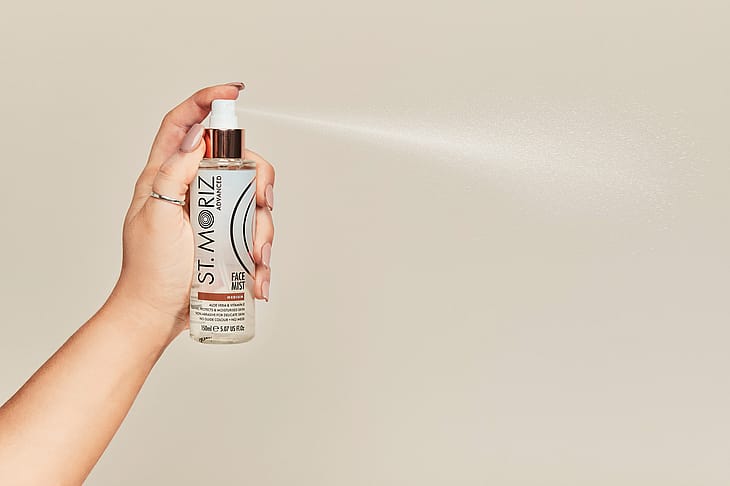 - Meget fin ansigts selvbruner mist, som kan påføres oven på make-up eller direkte på huden