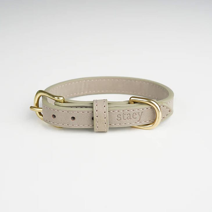 Dette elegante håndsyet Grace halsbånd fra Staey er fremstillet af højkvalitets nubuk læder, der ikke kun føles blødt og luksuriøst mod din hunds pels, men også sikrer en langvarig holdbarhed.