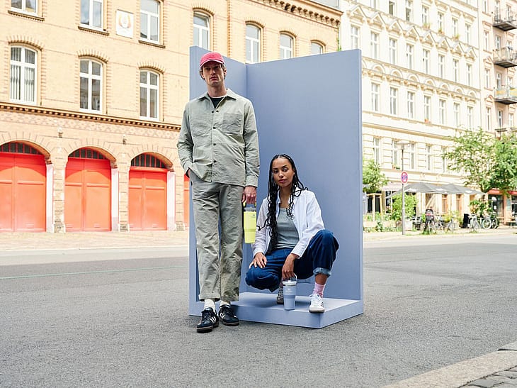 Vandflaske, låg og sugerør går nemt i opvaskemaskinen.