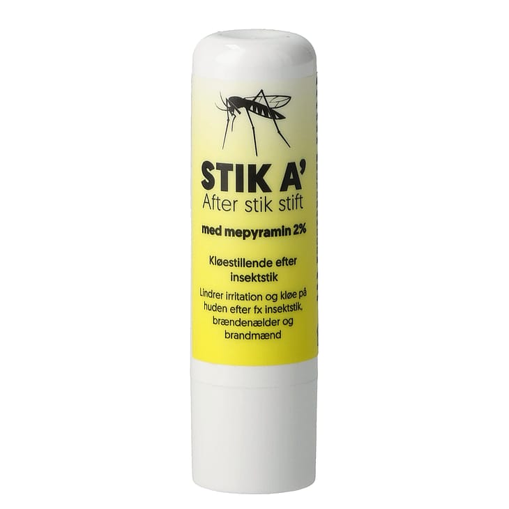 Stik A´ afterstik stift er en kløestillende stift, der lindrer efter stik fra myg, hvepse, bier eller bremser. Kan også anvendes efter kontakt med brændmænd eller brændenælder.