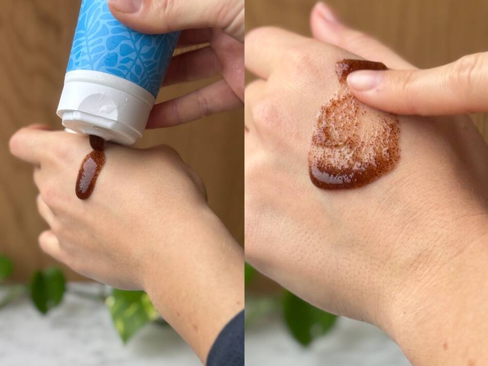 Scrubben kombinerer mekanisk peeling med kemisk eksfoliering. Den fjerner døde hudceller på overfladen og arbejder samtidig i dybden med salicylsyre. Det hjælper med at rense porerne og mindske keratinophobninger.