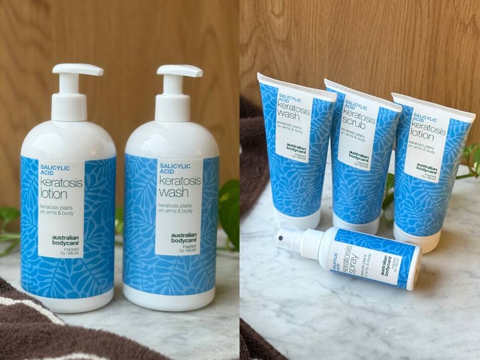 Australian Bodycare har udviklet en komplet serie til dig med Keratosis Pilaris. Produkterne indeholder salicylsyre, som nænsomt men effektivt eksfolierer huden, fjerner døde hudceller og hjælper med at rense porerne.