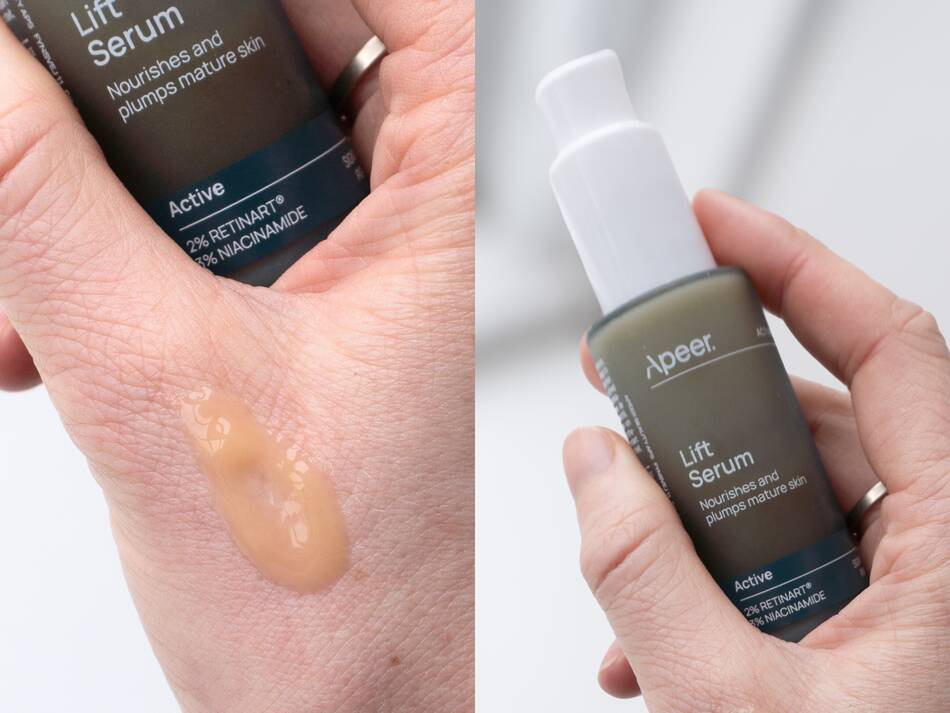 Med produkter fra Apeer Lift-serien kan du sammensætte en personlig og effektiv hudplejerutine, der arbejder målrettet med fine linjer, ujævn hudtone og tab af elasticitet. De aktive ingredienser, herunder det innovative bio-retinoid RetinART®, kombineres med hudstyrkende stoffer som niacinamid, hyaluronsyre og squalane for at sikre synlige resultater og høj tolerabilitet.
