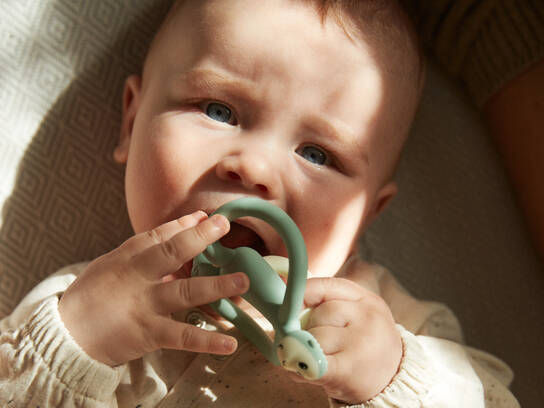 En bidering, der kan gøres kold i køleskabet, er en rigtig god idé at investere i. Det kolde stykke på bideringen kan nemlig hjælpe med at lindre irritationen i gummerne hos de små.