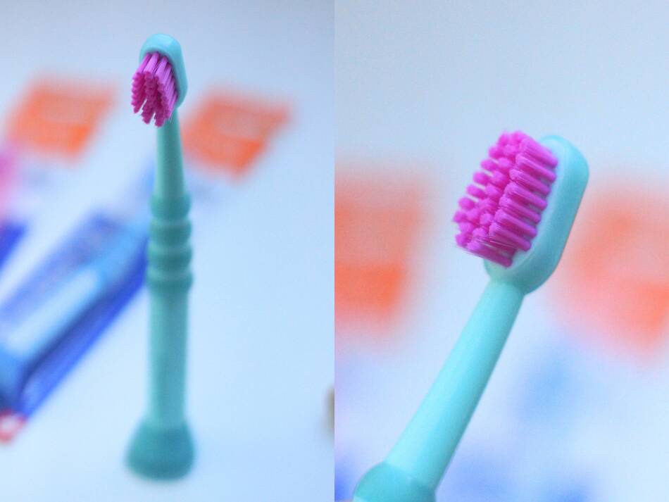 Når de første tænder bryder frem, er det vigtigt at vælge en tandbørste, der er ekstra skånsom mod både tænder og tandkød. Babys mund er meget følsom, og derfor bør tandbørsten have ultrabløde børstehår og et lille børstehoved, der passer til den lille mund og gør det lettere at nå alle tænder.