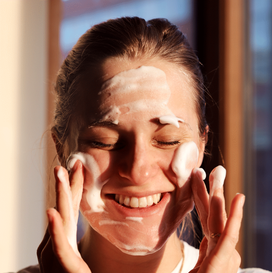 Min steps er næsten ens morgen og aften. Om morgenen elsker jeg at gøre en vaskeklud våd i iskoldt vand og så komme den på huden. Her masserer jeg let, så jeg både for øget blodcirkulationen og fjernet de døde hudceller. Herefter: En mist. En mist danner ligesom en lille fugtlomme under dit serum. Og det er nemlig det næste skridt. Et serum. Det er en lille koncentreret sag, som lige skal have lov at sidde og trænge ind, så jeg børster tænder imens. Og så kommer dagcremen på. Gerne med lidt SPF i.