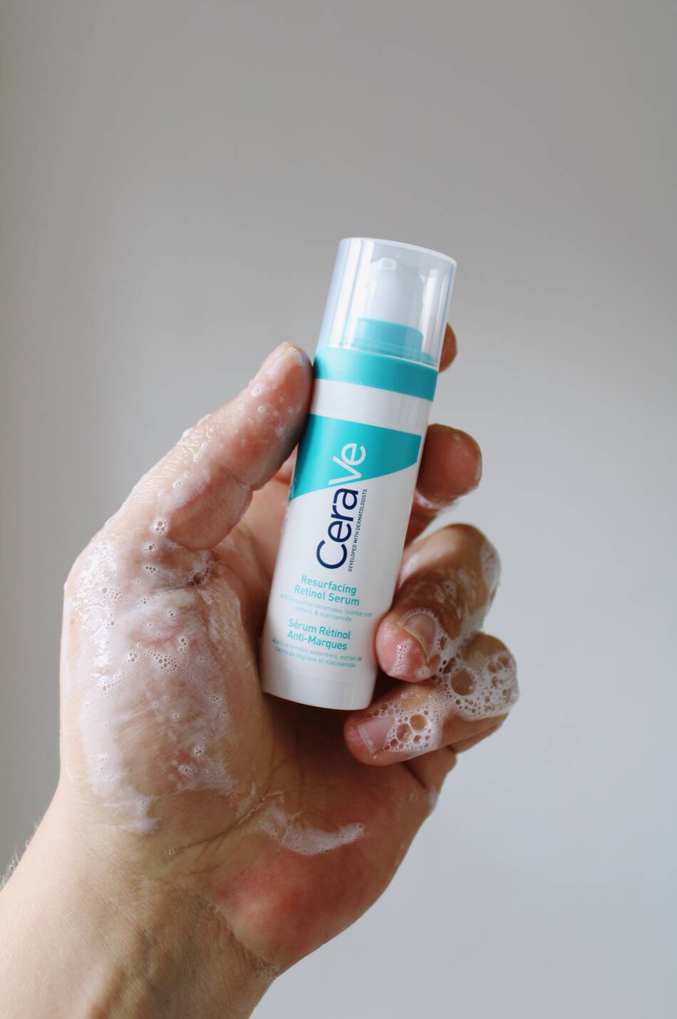 Et serum som Resurfacing Retinol Serum fra CeraVe er hurtigt absorberende serum, der føles let og blidt på huden.