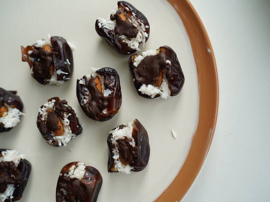 5. Smelt chokoladen over vandbad eller i mikroovn, og fordel chokoladen på tværs af dadlerne, som du ønsker.
