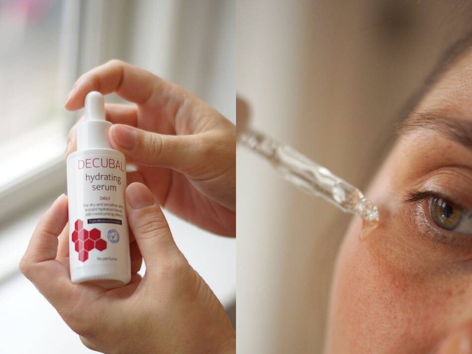 Jeg starter altid med at vaske mit ansigt med koldt vand, hvorefter jeg dupper det tørt med et håndklæde. Derefter er det tid til serum, og når den er trængt godt ind, afslutter jeg med en ansigtscreme.En ansigtspleje duo, der holder huden virkelig fugtet og blød i den kolde tid, er Decubal Hydrating Serum og Decubal Hydrating Day Cream.