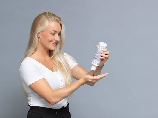 ”Silver shampoo er genial til både lyst og gråt hår. Jeg anbefaler, at du bruger en silver conditioner sammen med din silver shampoo. Dine spidser har nemlig også brug for fugt, og desuden er spidserne ofte mere tørre end resten af håret og vil derfor tage anderledes imod silver produkterne. Brug din silver shampoo 2-3 gange om ugen, og pas på med at lade shampooen virke for længe”.