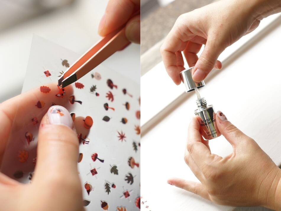 Alt du skal bruge til efterårets sødeste negletrend er de fine stickers fra le mini macaron og en top coat.