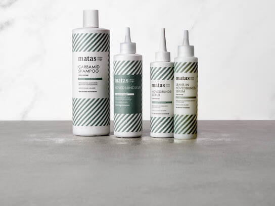 Fjerde produkt er den velkendte Matas Carbamid Shampoo. Shampooen er specielt udviklet til tør og irriteret hovedbund. Den indeholder bl.a.: