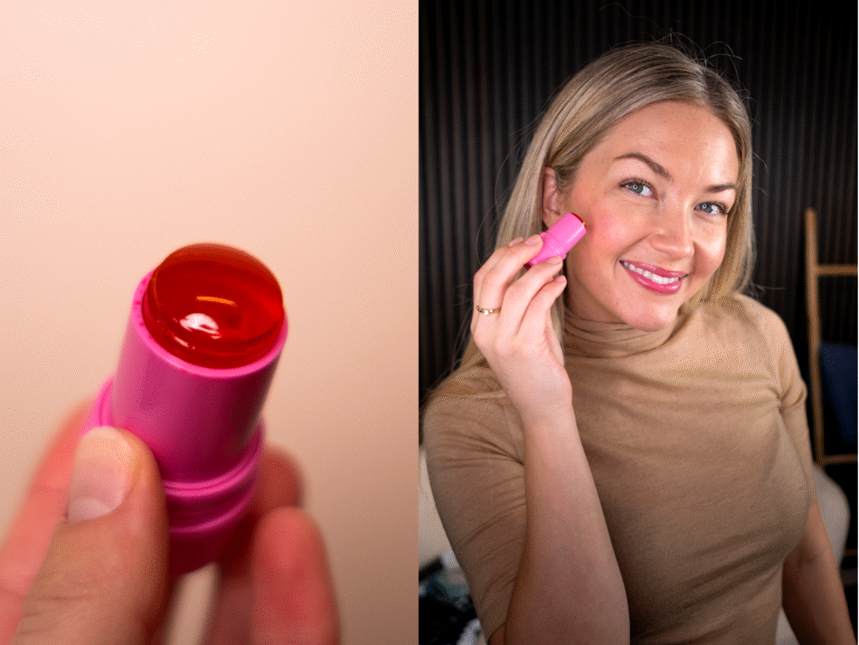 Her bruger jeg Cooling Water Jelly Tint Stick i farven Fresh. Et lille tip til påføring er at duppe den på din makeupbørste og så fordele den på huden – fremfor at duppe den direkte på kinderne. Farven sætter sig nemlig hurtigt.