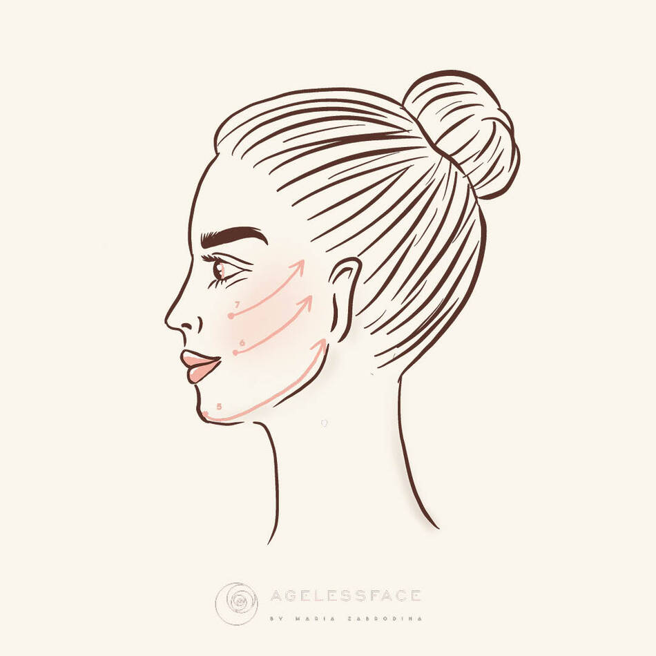 - Læg gua sha stenen fladt over - først det ene - kraveben og træk den blidt og langsomt opad, indtil du møder kæbebenet