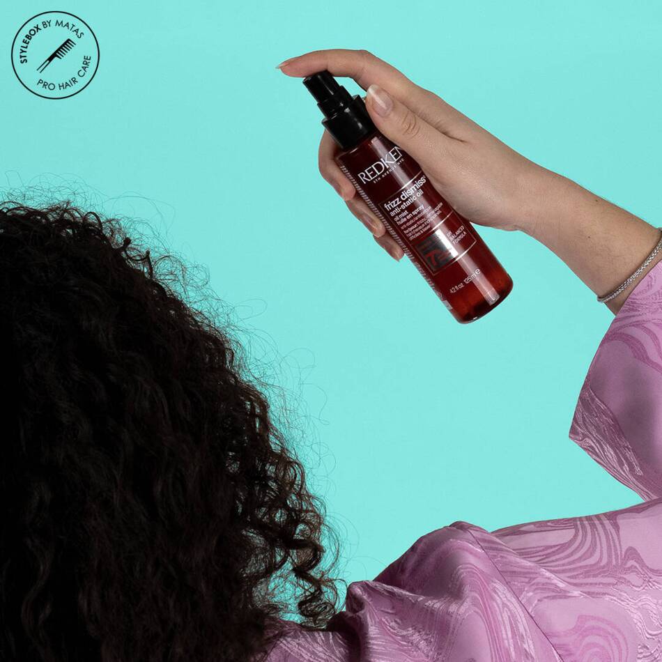 Sørg også for at bruge produkter, der har varmebeskyttelse i sig. Ofte er varmen fra vores stylingredskaber med til at gøre, at håret kruser op og bliver tørt, da det over tid bliver skadet af det. Du finder varmebeskyttelse i Redken Frizz Dismiss Leave in, som dermed beskytter håret samtidig med, at den plejer. Sørg også for at skrue ned for varmen på føntørren, så du ikke udtørrer håret unødigt.