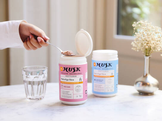 Alle produkter fra HUSK® Psyllium Mavebalance indeholder 85% naturlige fibre fra psyllium frøskaller. De bidrager til en normal fordøjelse og tarmfunktion, samt til at blødgøre afføring.