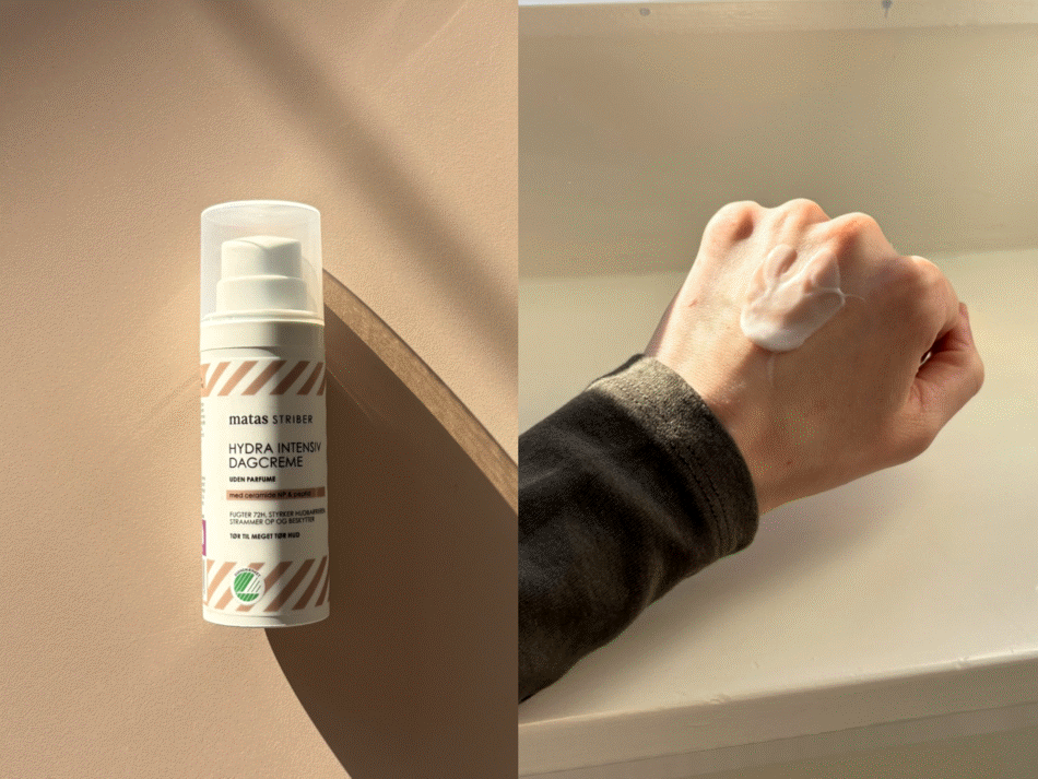 Jeg har testet Matas Striber Hydra Intensiv Dagcreme uden parfume, og den gør en mærkbar forskel - især sidst på dagen, hvor min hud normalt begynder at stramme. Cremen giver fugt i op til 72 timer og hjælper med at genopbygge hudens barriere. Ceramide NP styrker og bidrager til at genopfylde hudens naturlige lipider, peptider forbedrer spændstigheden, og saccharide isomerate binder fugten i huden.