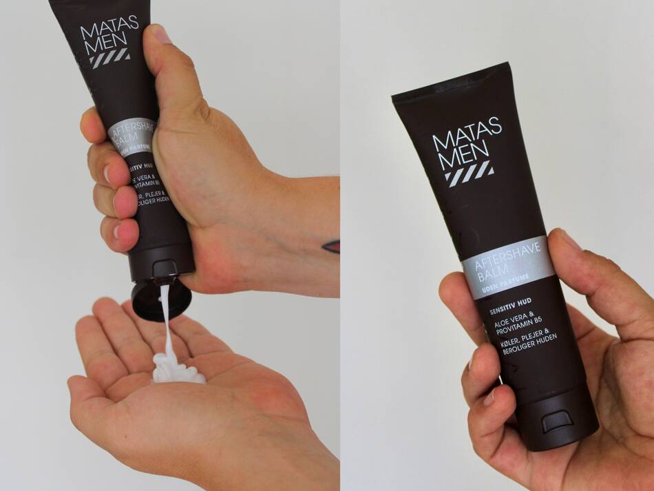 Aftershave Balm fra Matas Men er særligt udviklet til sensitiv hud og er helt uden parfume, så den cremede lotion plejer huden på skånsom vis.