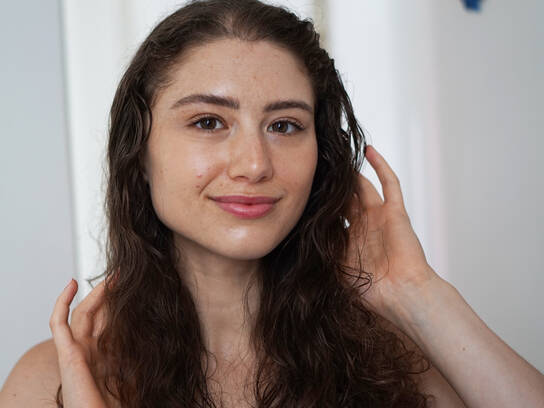 Når jeg har tørret mit hår, bruger jeg lidt mere hårolie til stylingen - og voilà; glansfuldt hår, der fremstår sundt og velplejet.