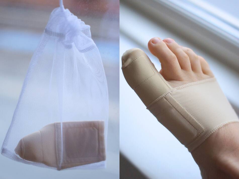 Ortosen støtter storetåen og hjælper med at modvirke, at den presses yderligere ind mod de andre tæer, når foden belastes. Samtidig reducerer den tryk og irritation omkring knysten, så du kan bevæge dig mere frit i hverdagen.