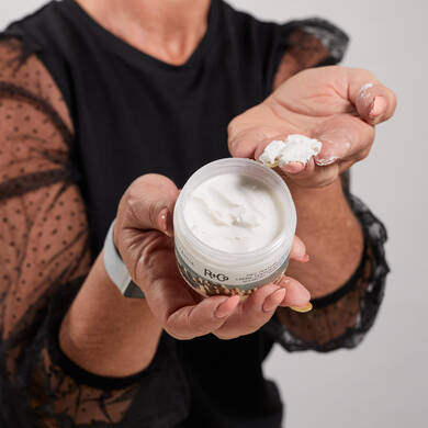 Herefter har Mike brugt R+ Co Sand Castle Dry Texture Crème, som er en teksturpomade, der giver masser af god volumen til det korte hår. Det gør, at din frisure holder formen hele dagen.