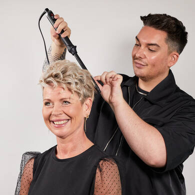 Har du mere længde på toppen end i nakken, kan du faktisk lave mange forskellige typer krøller. Du kan bruge et traditionelt krøllejern til at lave både spiralkrøller og tætte, små krøller. Du kan også sagtens lave løse bølger med et bølgejern.
