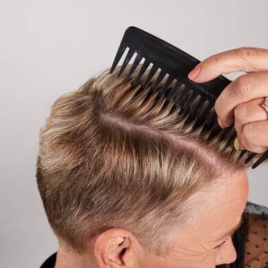 En god idé er at bruge en fiber-voks i de korte længder. Fibrene sætter sig nemlig på hårstråene og er med til at give det synligheden af mere fylde. Derudover bliver håret nemt at style, som du gerne vil have det.