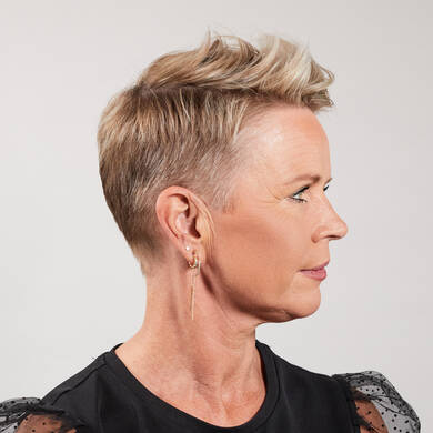 Det her look er fantastisk, da det har lidt mere kant - til de dage, hvor der gerne må ske lidt! Læs med her, så guider vi til en flot sideskilning i det korte hår.