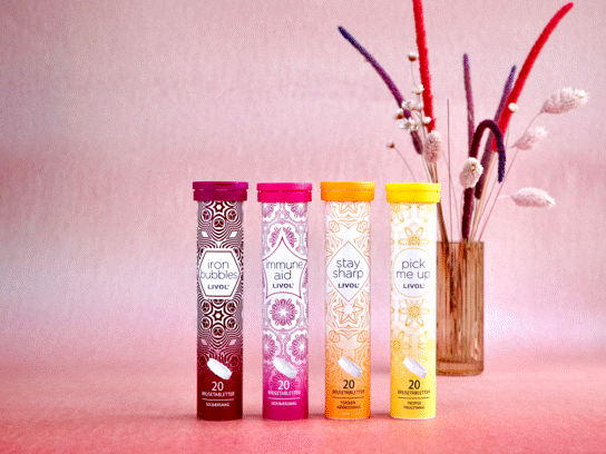 Har du svært ved at sluge tabletter, eller ønsker du blot en lettere og mere velsmagende måde at få dine vitaminer på, er brusetabletterne fra Livol lige noget for dig! Brusetabletterne opløses i et glas koldt vand (200 ml) og drikkes som en læskende drik – nemt og lækkert! Tabletterne er nemlig tilsat en frisk smag af enten fersken og abrikos, skovbær, tropisk frugt eller solbær, som forvandler et glas vand til en forfriskende vitamindrik. Vi guider dig gennem 4 brusetabletter fra Livol her, så du kan finde det tilskud, der passer til dine behov. Husk blot, at kosttilskud aldrig kan træde i stedet for en varieret kost.