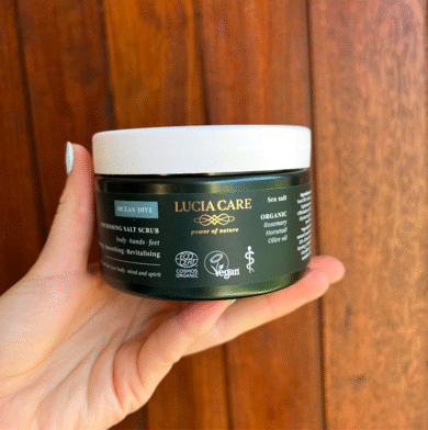 Lucia Care Salt Body Scrub er fantastisk til at komme af med de døde hudceller og give huden fornyet glød og smidighed. Den indeholder havsalt, som blidt eksfolierer huden, samt en masse skønne, økologiske olier, som efterlader huden utrolig blød og velfugtet efter brug.