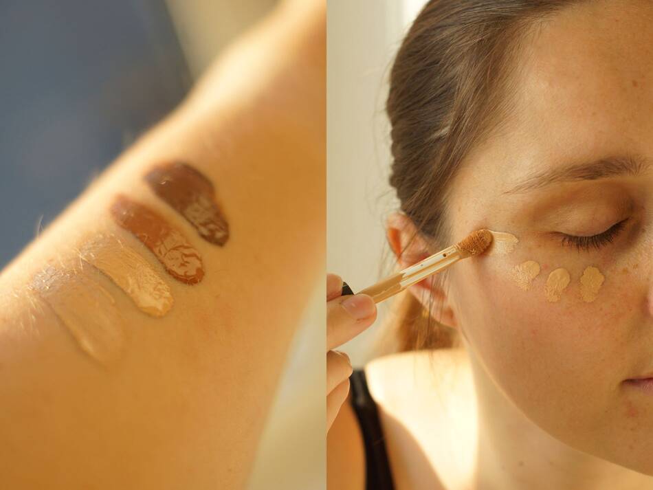 Første step er at finde den helt rigtige nuance til min hud. Jeg har lavet en lille swatch-test for at finde ud af, hvilken farve concealer, jeg skal bruge - og så tænker jeg måske, at en af de mørkere nuancer kan bruges til at lave noget contour. Den smelter bare ind i huden og har en perfekt dækkeevne.