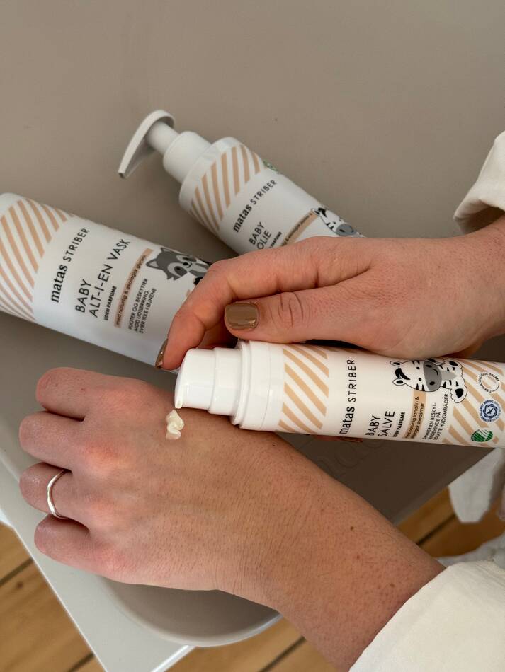 Matas BabyStriber indeholder økologiske ingredienser, bærer Svanemærket og er certificeret af Asthma Allergy Nordic. De er alle uden parfume og dermatologisk testede.